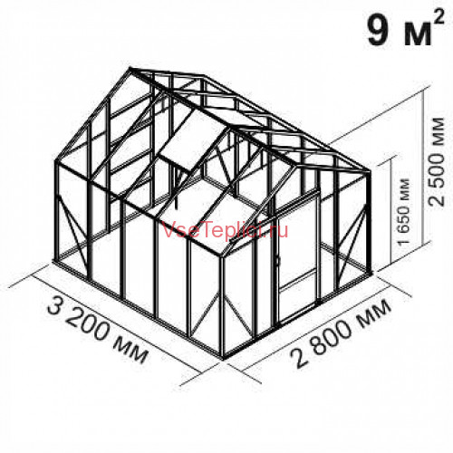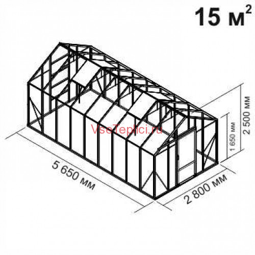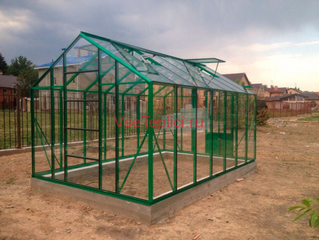 - Скат крыши имеет резкий угол наклона, предоставляя оптимальное место для высокорослых растений внутри теплицы.