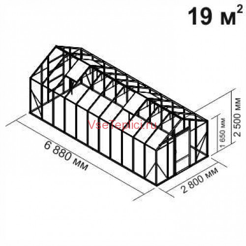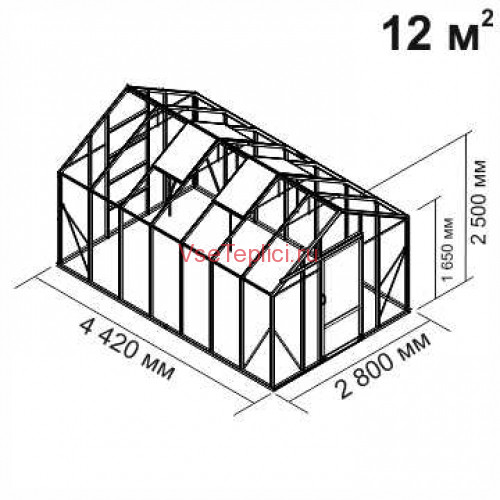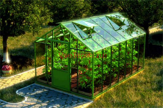 - Скат крыши образует большой острый угол, что обеспечивает комфортное пространство для высокорослых тепличных растений.