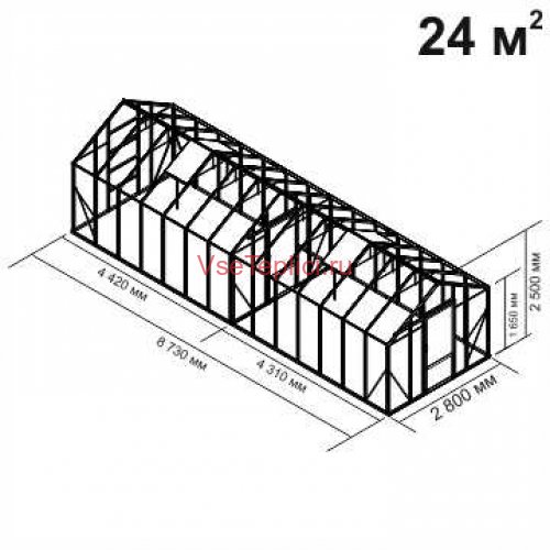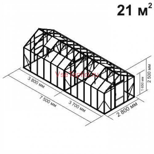 - Нижняя обвязка произведена из стального оцинкованного профиля, что обеспечивает жесткость каркаса по всему периметру теплицы.